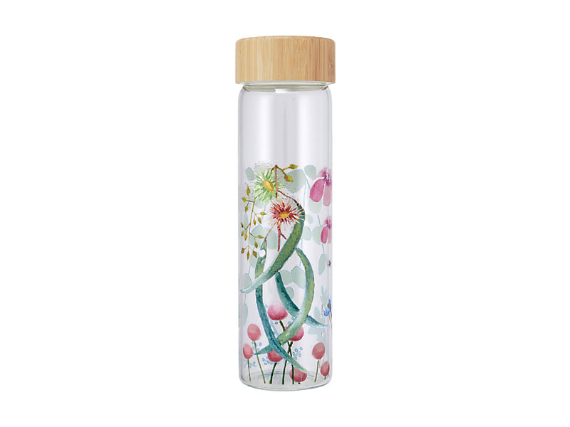 Stay hydrated in style with the Eucalyptus Bloom glass water bottle. Designed in collaboration with the Royal Botanic Gardens Victoria, this exquisite water bottle features a hand-painted design inspired by the garden’s native flowers and foliage. Made from quality glass with a bamboo lid, this gorgeous bottle is strong and durable so you can take it with you on the go. Full of beautiful detail, it brings a touch of elegance with a uniquely Australian feel.