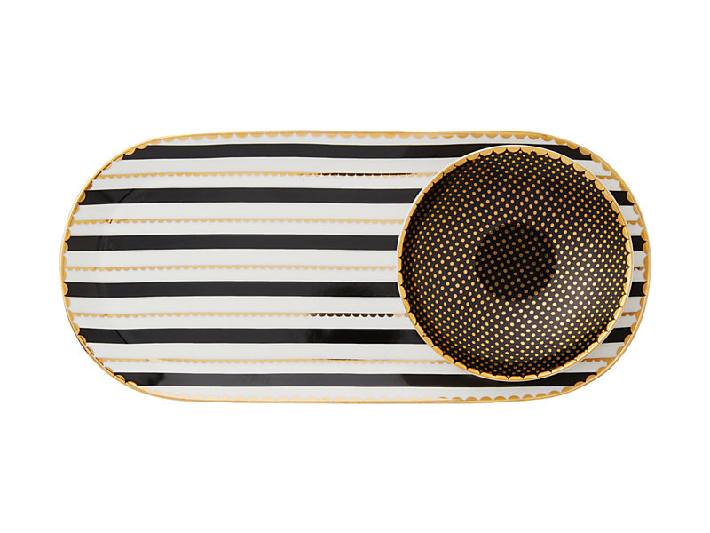 Add a dash of luxury to tea time with this Regency platter and dish set. A special edition release from our popular Teas & C’s collection, this elegant servingware is inspired by the beauty of Georgian architecture and Regency England. It’s perfect for serving light bites or morning tea, featuring a charming platter and matching dip bowl. With a striking look and details in real gold, it’s ideal for gifting and a must-have for any tea lover.
