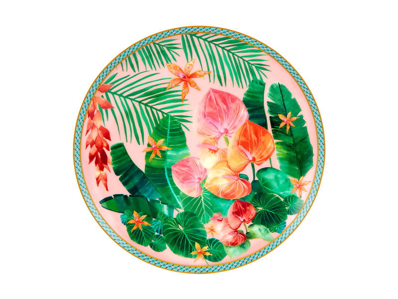 Brighten up tea time with this Tropicana plate. Part of our popular Teas & C’s collection, it features a lush design of tropical foliage and ginger lilies in a vibrant palette of pinks, blues and greens. A gorgeous accompaniment to your favourite tea or coffee spread, it’s the perfect size to serve sandwiches, sweet treats and pastries. With a contemporary coupe shape and the classic elegance of high-quality porcelain, it’s perfect for anything from morning tea to high tea.
