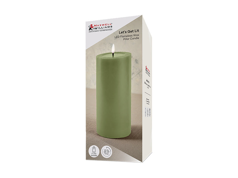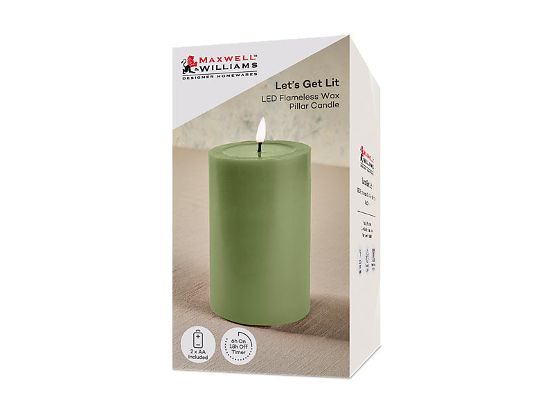 Set the mood with this flameless wax pillar candle from the Lets Get Lit collection. This ingenious candle has a real wax exterior with a 3D LED light that gives a gentle, flickering candlelight effect. Designed to mimic the look and feel of a traditional candle – with none of the mess – it is battery powered with a remote-control switch option. Safe, reusable and practical, it adds a touch of intimacy and makes a beautiful centrepiece for any occasion.
