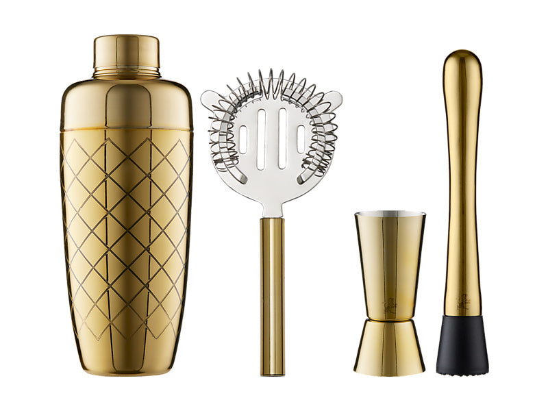 - Set includes 500ml cocktail shaker, jigger, muddler and Hawthorne strainer