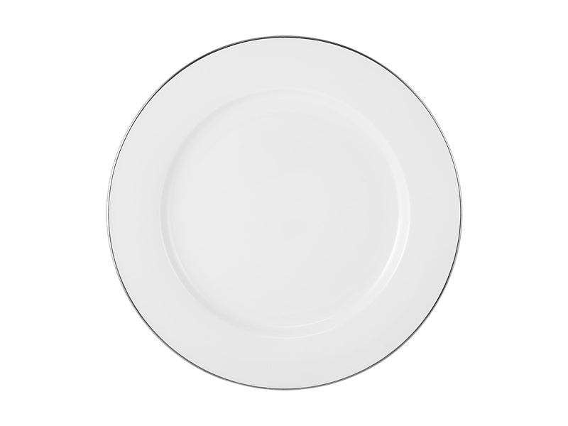 The White Platinum 27.5cm rimmed dinner plate adds a touch of luxury to your table. This gorgeous piece brings a premium edge to classic dinnerware, combining the crisp beauty of white porcelain with the sparkle of platinum trim. Simple and elegant, it has a timeless round shape with a rimmed edge, giving spectacular presentation to main meals and more substantial dishes. A stylish way to add a little something extra to a classic lunch spread or dinner party, it will make an impression at any occasion.
