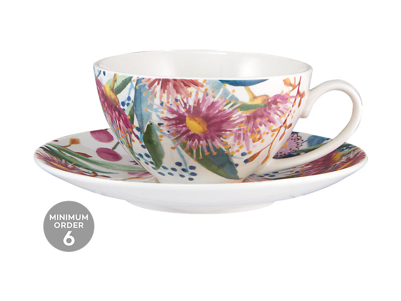 This Eucalyptus Bloom cup and saucer set will brighten your home with the beauty of native flora. Designed in collaboration with the Royal Botanic Gardens Victoria, this exquisite teaware features a hand-painted floral design inspired by the garden’s native flowers and foliage. Beautifully detailed with a modern coupe shape, it has a distinctly Australian feel – a stylish way to enjoy your favourite cup of tea.